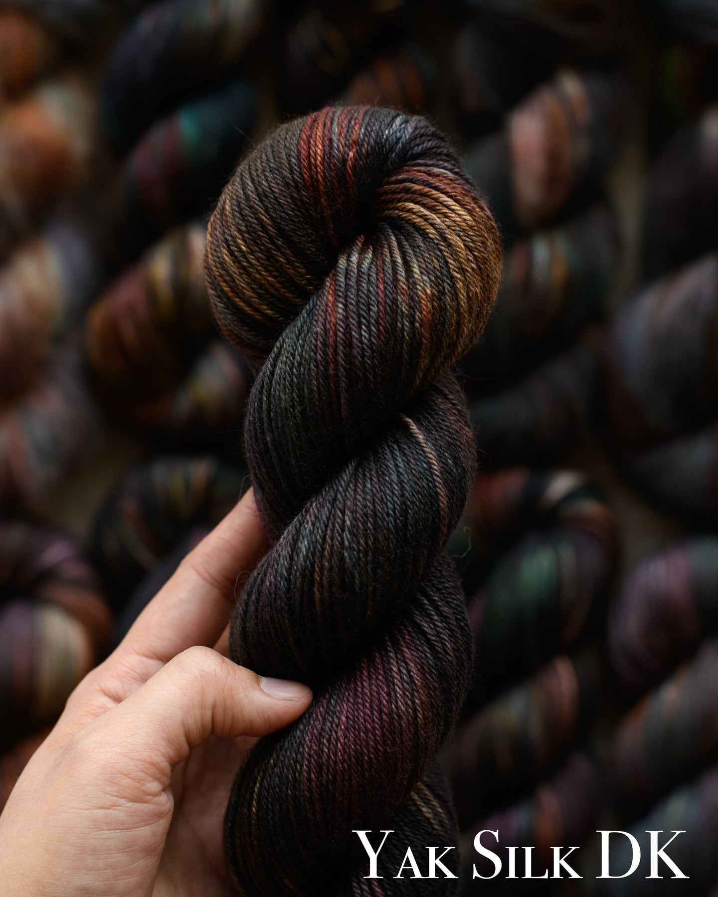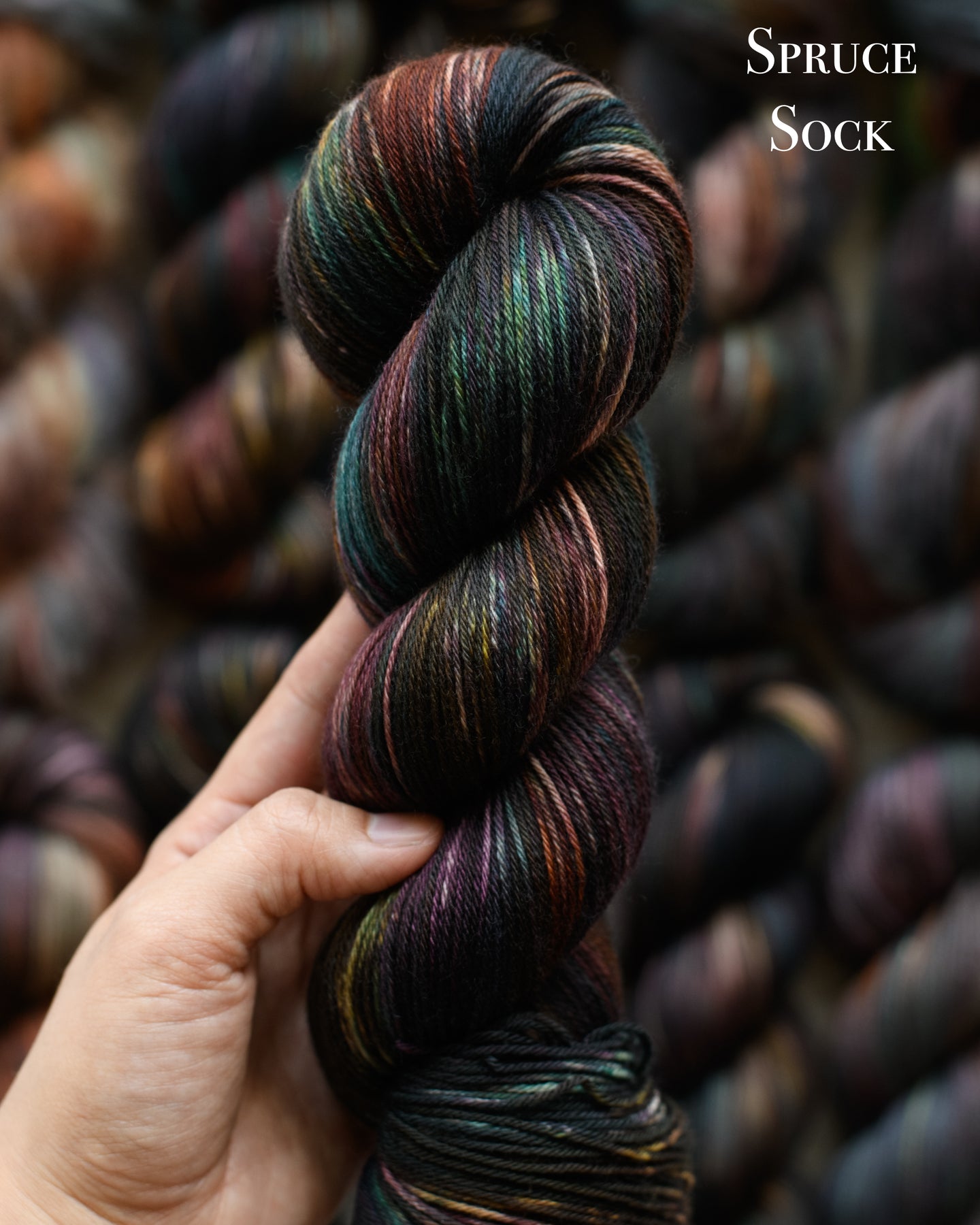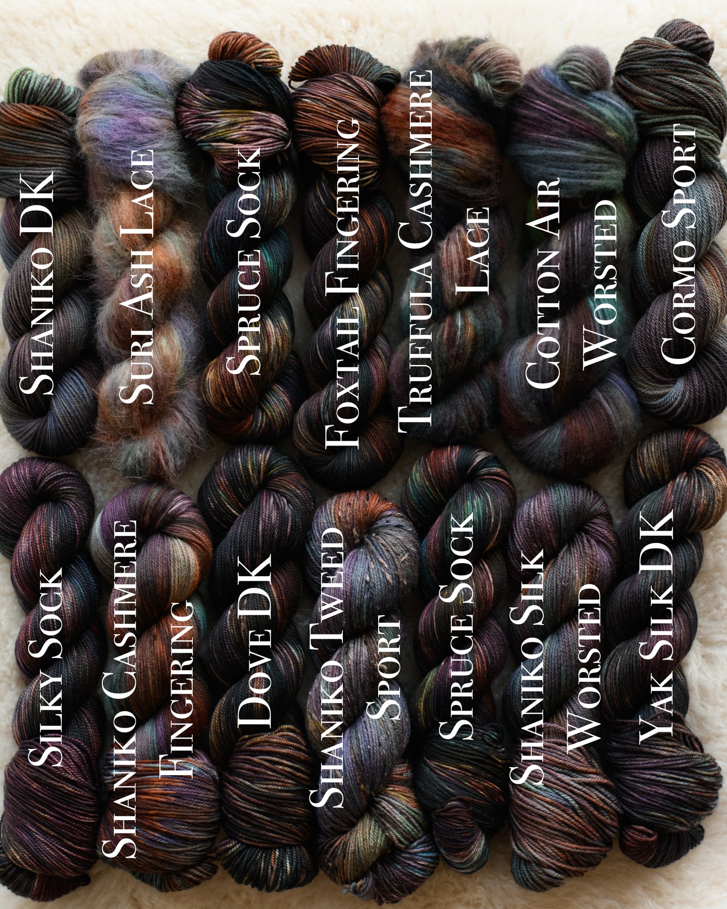 Our final colorway is named simply, Outlander. When mapping out this variegated and selecting the palette, I had a clear vision in mind. It required feeling like both Claire and Jamie; equal parts healer and protector. Essentially, I wanted it to feel magical, earthy, romantic, and evoke a feeling of strength. So in true Lauren fashion I decided to utilize 30 dyes for just this beauty. And every single one of them was 100% NECESSARY. 😂😂