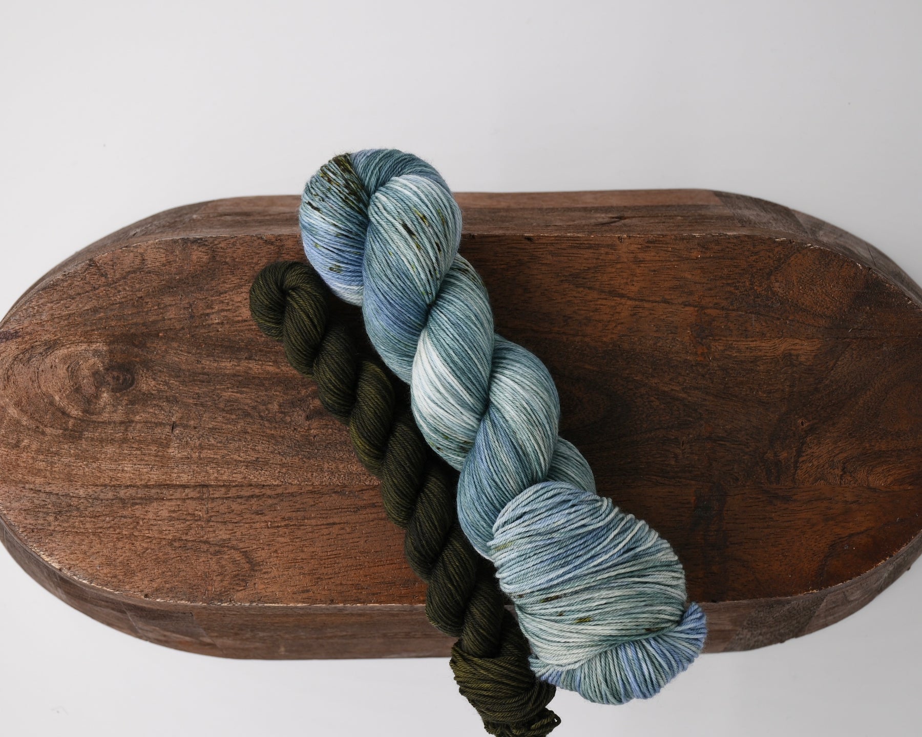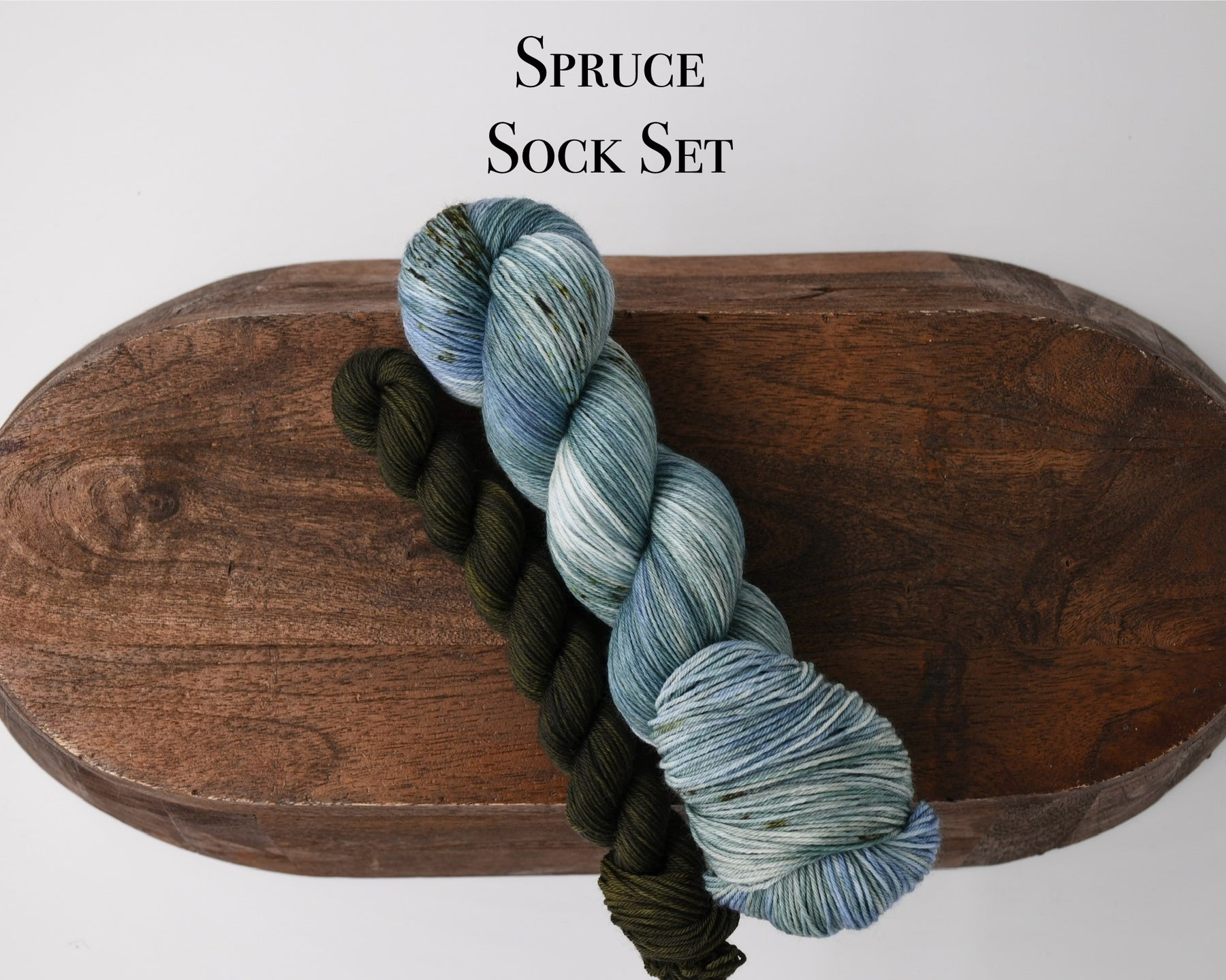 The Spruce Sock set includes a full 100 g skein of PB&J and a 20 g mini of Northern Lights, Cannabis Indica.